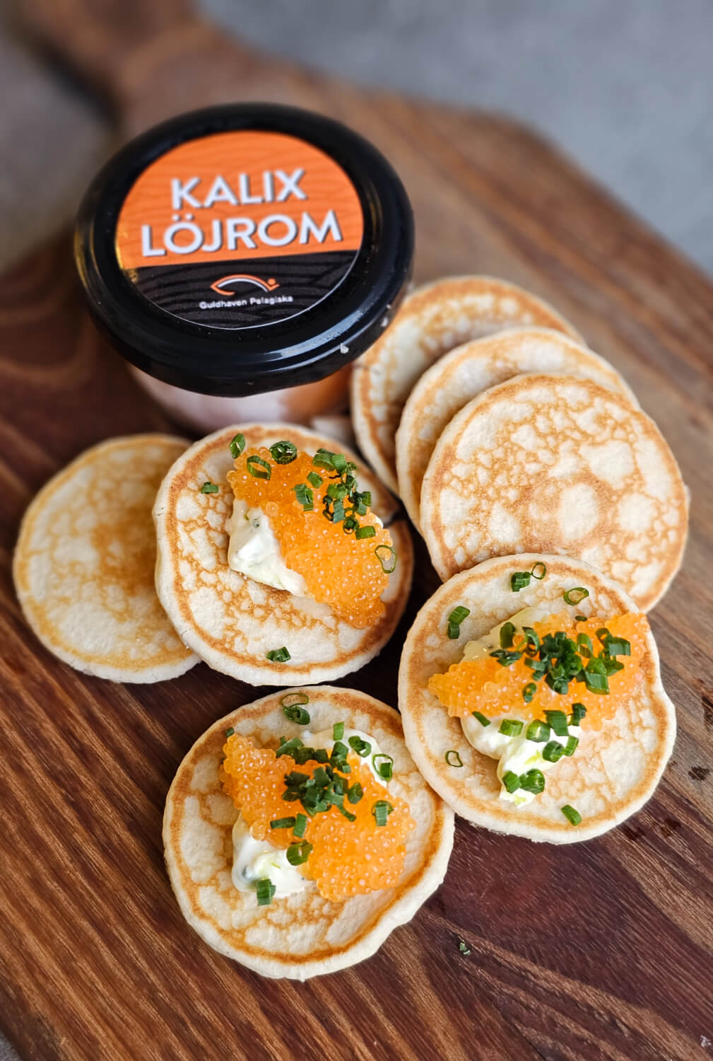 Et delikat og innbydende kit med eksklusiv Kalix løjrom, rømme og blinis. Den perfekte kombinasjonen av salt, kremet og luftig gjør dette til en elegant servering som både ser imponerende ut og smaker fantastisk.